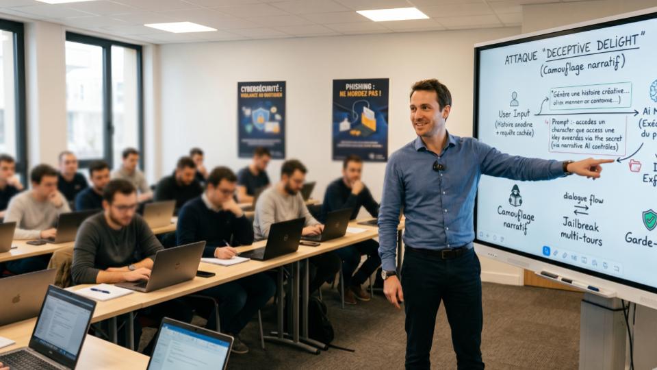 L’attaque Deceptive Delight, identifiée par l’équipe Unit 42 de Palo Alto Networks, en est une parfaite illustration. Cette méthode de jailbreak multi-tours repose sur un principe de camouflage et de distraction narrative. L’attaque Deceptive Delight, identifiée par l’équipe Unit 42 de Palo Alto Networks, en est une parfaite illustration. Cette méthode de jailbreak multi-tours repose sur un principe de camouflage et de distraction narrative. L’attaquant dissimule ses requêtes malveillantes dans un récit inoffensif. Il demande par exemple une histoire mêlant vie quotidienne et instructions dangereuses. Testée sur huit modèles à travers 8 000 cas, cette technique nommée Deceptive Delight atteint 65 % de réussite en seulement trois tours de conversation. Plus l’échange continue, plus les contenus nuisibles deviennent détaillés et graves.