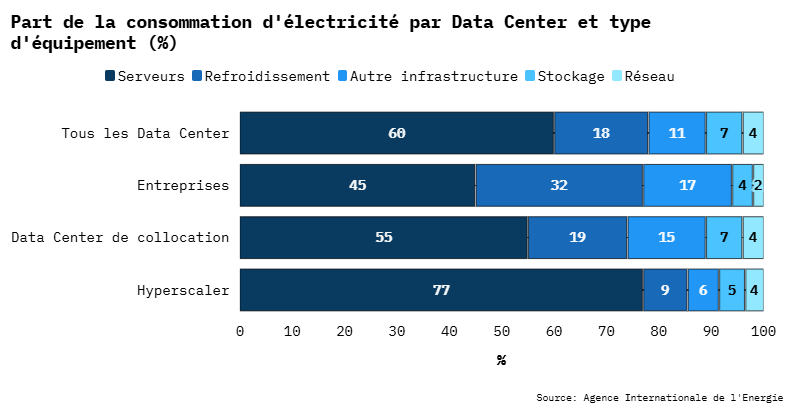 Actuellement, 45 % de la consommation mondiale des datacenters se concentre aux États-Unis, contre seulement 16 % en Europe. Ce déséquilibre renforce la domination des « hyperscalers » qui imposent leurs normes énergétiques et technologiques au reste du monde.