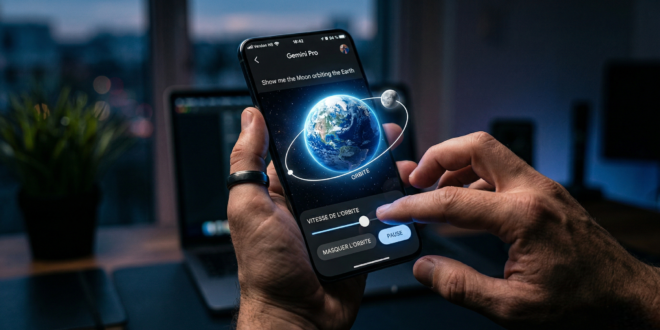 La présentation de Google montre à quel point cette innovation est intéressante. En demandant une simulation de la Lune autour de la Terre, Gemini affiche un modèle complet. L’utilisateur modifie la vitesse de rotation. Il peut aussi masquer certains éléments ou mettre la scène en pause.