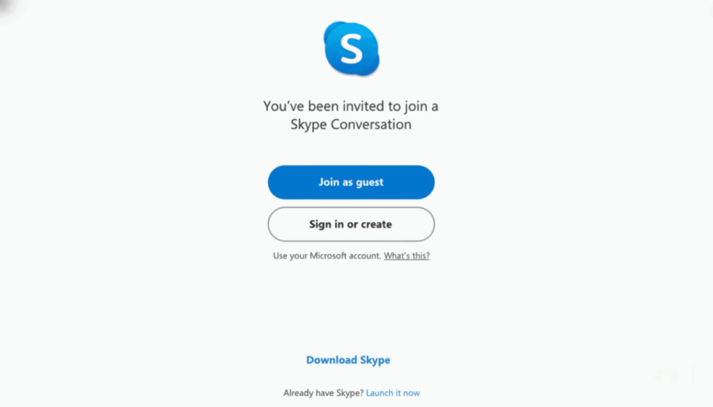 Les utilisateurs de Skype peuvent utiliser le service gratuit en tant qu’invités. Autrement dit, il est possible d’entamer une conversation, de passer un appel vidéo ou vocal ou de transférer des fichiers sans avoir à créer un compte Microsoft.