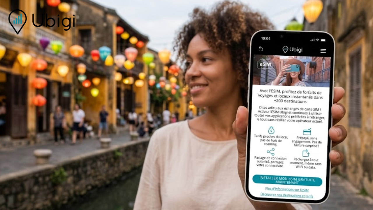 Au Vietnam, disposer d’une connexion stable dès l’arrivée peut éviter bien des complications. Ubigi repose sur une eSIM unique, activable via QR code avant votre départ. Vous pouvez planifier l’achat jusqu’à six mois à l’avance, puis le système Smartstart déclenche automatiquement le forfait à votre arrivée.
