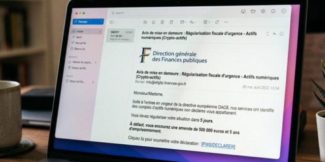 Vous ouvrez votre boîte mail, et là, tout semble crédible. Le message parle de la fiscalité des crypto-actifs. Il évoque une régularisation urgente, avec un délai de cinq jours. Le genre de courrier qui fait réagir sans réfléchir.